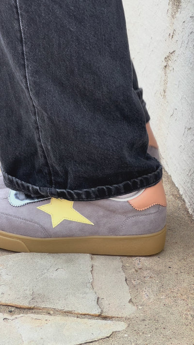 Un modèle en suède gris clair rehaussé de détails colorés, pensé pour offrir confort, style et une touche d’originalité au quotidien.