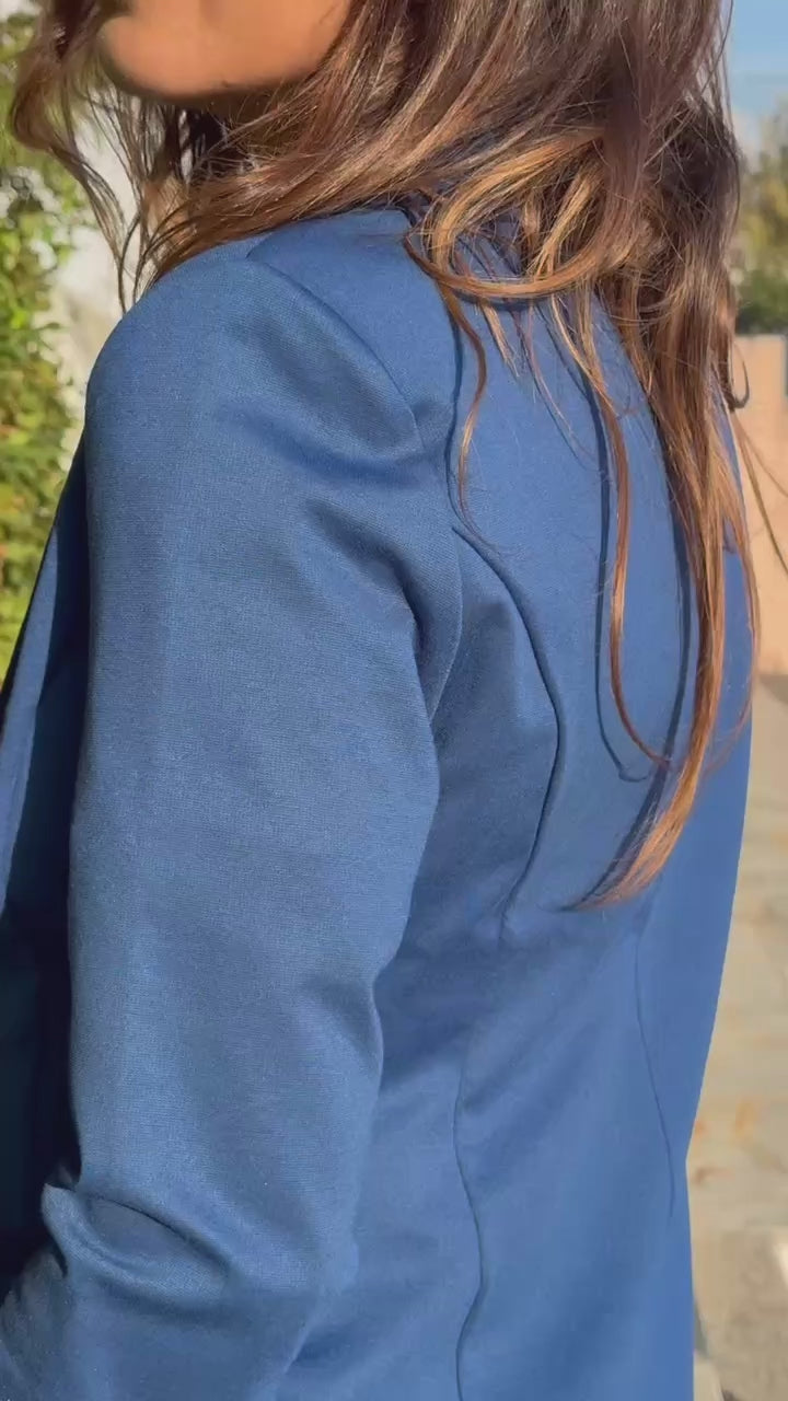 Le blazer Urdin attire le regard par sa couleur bleu roi vibrante, symbole d'assurance et de modernité. Sa coupe ajustée structure la silhouette tout en restant confortable.
