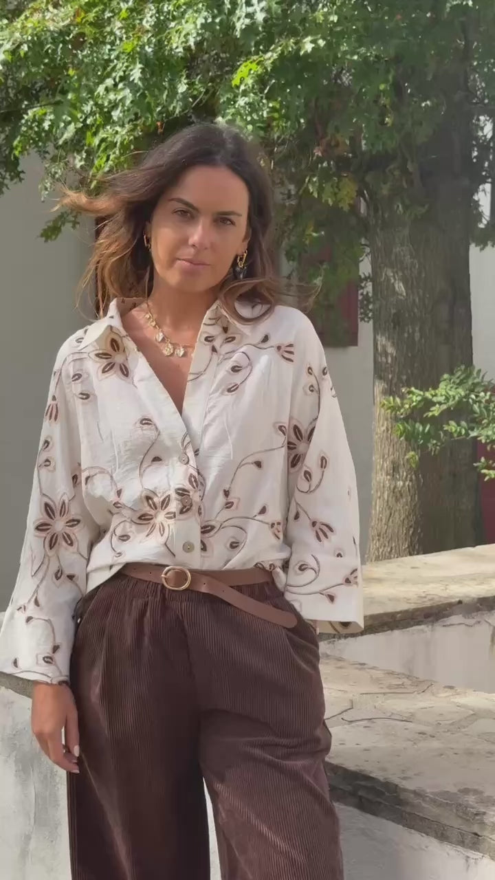 Avec sa coupe ample, ses manches fluides légèrement raccourcies et ses broderies délicates, elle dégage un charme bohème irrésistible.