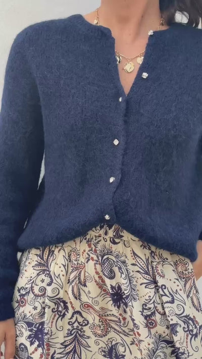 Le détail de ses jolis boutons en strass apporte une touche lumineuse et féminine, qui s'accorde avec tout.