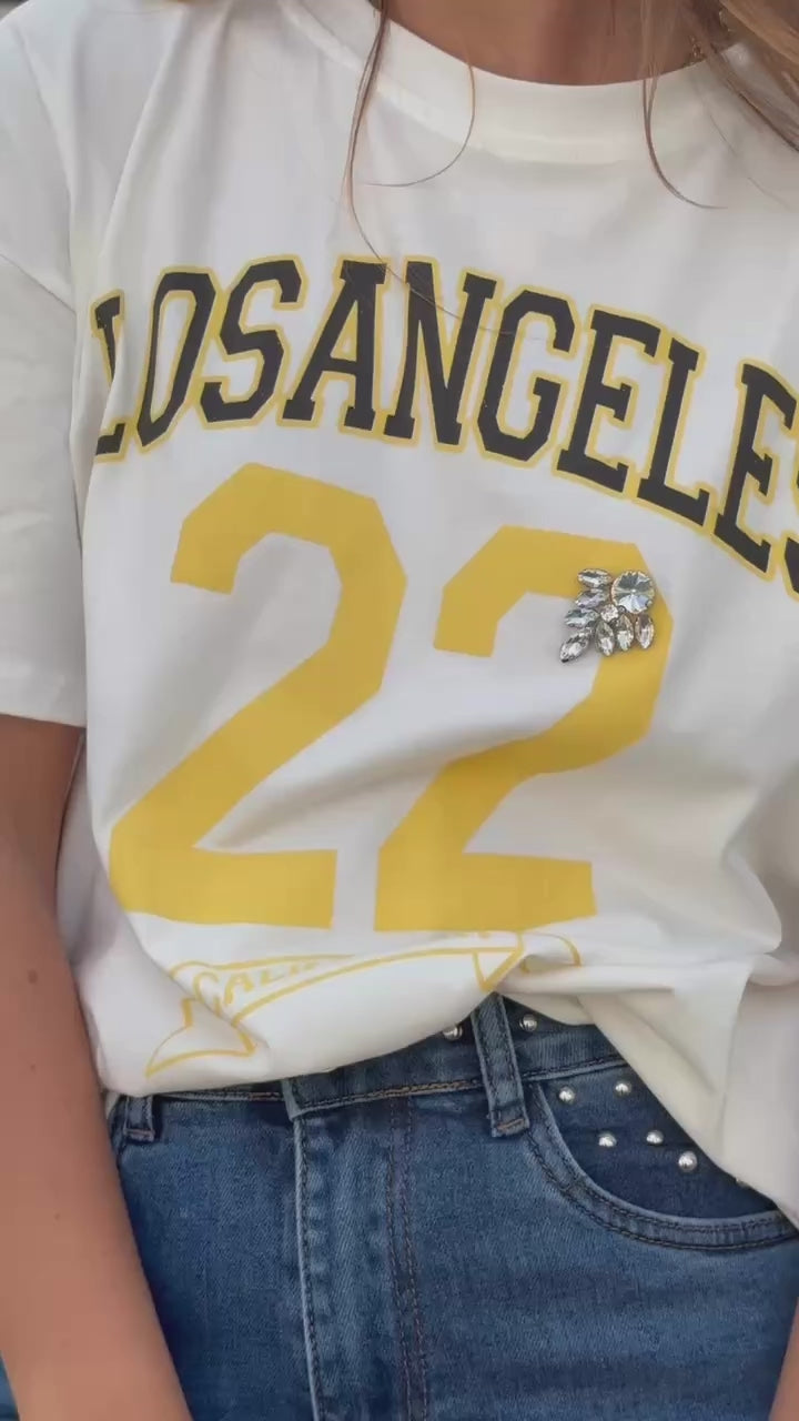 Un tee-shirt cool, lumineux et plein d'allure. Sa coupe loose et sa matière douce apportent ce confort parfait pour être décontracté, tout en gardant un vrai style.