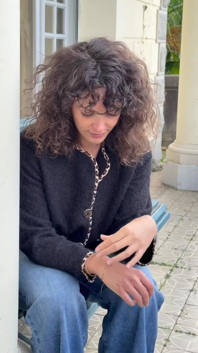 - Fermeture par de jolis boutons dorés texturés